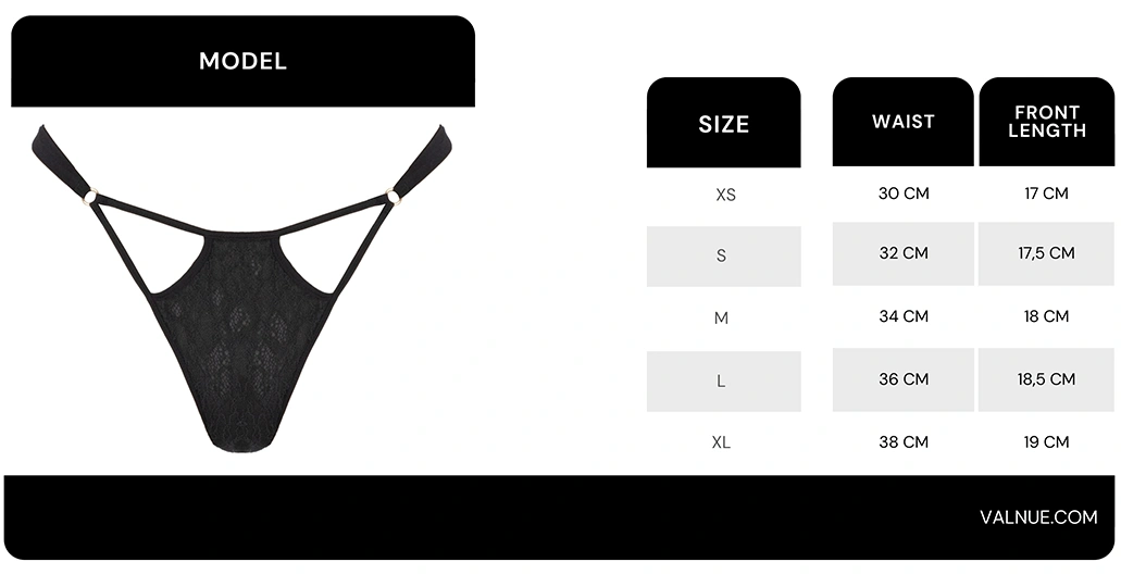 Alice Black Lace Thong is both simple and powerful, wrapping you in a magnetic energy that amplifies your allure with each wear. The adjustable side straps and golden accents enhance your inner charm in every movement. This hidden detail beneath your outfit holds a captivating energy that is felt beyond your wardrobe, projecting a magnetic aura only you can bring to life.